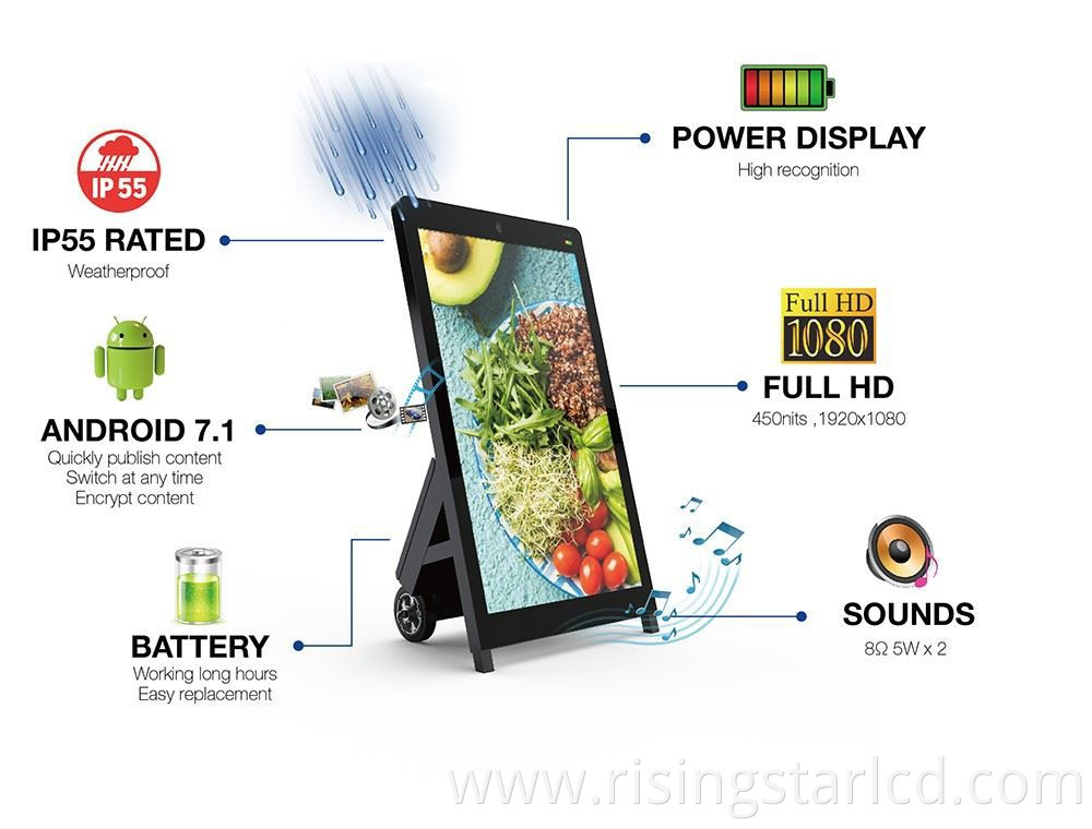 outdoor Advertising Screens Battery Powered 4k full hd player Digital Signage Movable interactive LCD