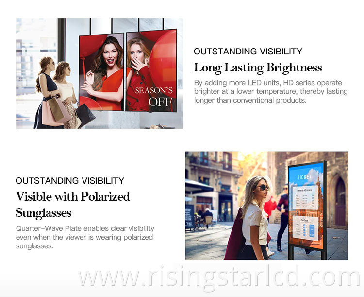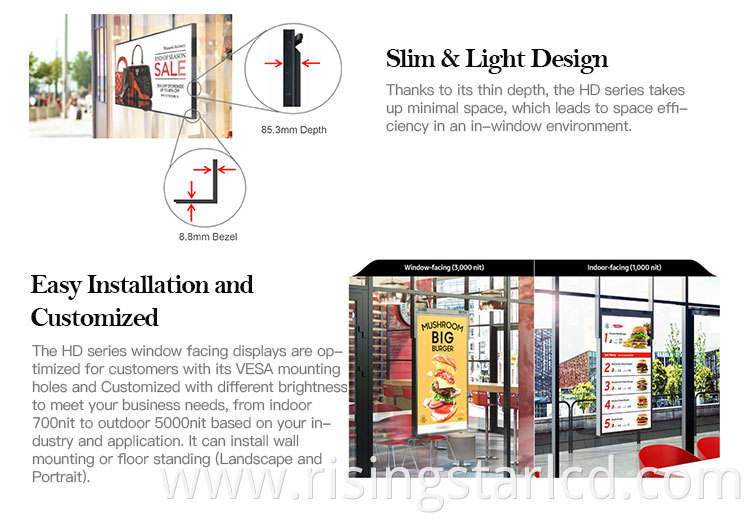 2500 nits digital shop window displays adopt full aluminum alloy design.esaily to installed.With wide view angle and clearly picture esay to captivates customer .
